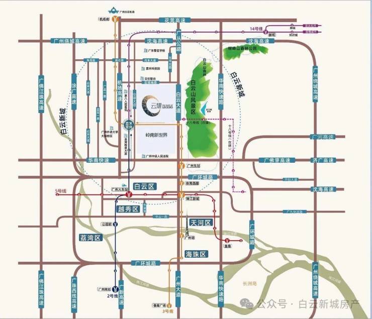新世界云耀凭借核心区位、完善配套、优质产品和品牌实力,未来发展潜力可观,是改善型置业的优选项目。从区域发展来看,白云新城作为广州重点发展的核心区域,正全力打造国际交往中心、总部经济集聚区,推动中航油南方总部、隆腾汇等项目投入使用,加快航空科技创新城、岭南邻里中心等项目落地,区域价值持续提升。嘉禾望岗依托TOD核心枢纽优势,作为白云综合城市中心中央商务区的核心承载地,未来将进一步集聚高端产业和人才,实现产城人高度融合发展。项目周边的广州设计之都、白云智慧城等产业载体,已形成千亿产业集群,华为广州研发中心(一期)已封顶,大量高端人才的涌入,将进一步带动区域住房需求,提升项目的保值增值能力。从产品来看,项目作为成熟社区的改善型产品,户型设计优越、配套完善、物业优质,目前全盘已售罄,少量二手笋盘稀缺供应,稀缺性进一步提升了项目的市场价值。此外,项目对口华师系学校和培英中学,优质教育资源加持,进一步增强了项目的竞争力,无论是自住还是保值,都是极具潜力的置业选择,适合追求高品质生活的改善型买家。