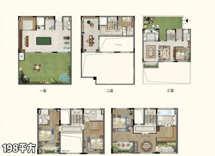每栋别墅配备前后双花园与私家庭院,部分户型设有多功能地下层,适合打造酒窖、影音室或私家健身空间。卧室与起居区动静分离,保证家庭生活的私密性。厨房餐厅采用开放式布局,与庭院空间自然衔接,呈现优雅生活格调。整体空间设计灵活,可随家庭阶段变化进行功能调整,真正实现一宅多用,居住无忧。