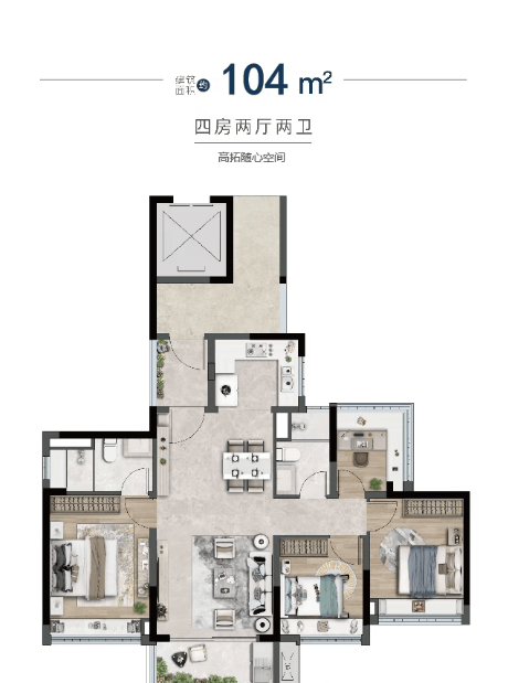 项目主打 106㎡、130㎡、168㎡纯改善四房,均为全南向或南北对流设计,适配刚改至终极改善的多元需求。106㎡四房为刚改主力户型,实测客厅面宽 3.8 米,四开间朝南,入户花园面积约 4㎡,可改造为储物间或休闲区;主卧套间配备独立卫浴与全景飘窗,次卧均能放下 1.8 米大床与衣柜,高拓空间让同等面积多一室,满足多人口家庭居住需求。