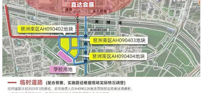 为了进一步提升通行效率,解决区域交通需求,政府主导推进了一系列交通改善工程,分为临时道路和永久道路两步推进,全方位打通区域交通脉络。临时道路方面,将搭设黄埔涌便桥,直接连接琶洲中区,计划2025年一季度建成,建成后,业主可快速抵达琶洲中区,直达广交会展馆,极大缩短通勤时间;永久道路方面,地块周边一共涉及7条道路,计划2026年四季度建成,其中最关键的是会展东路,这条道路直达广交会展馆,又能串联新港东路、阅江路等核心交通干道,便捷通往珠江新城、金融城等核心区域,彻底打破区域交通壁垒,实现全城畅快通勤。