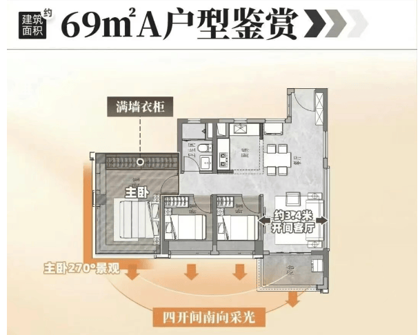 作为广州首批执行“新规100%得房率”政策的新盘,《保利珠江印象》以约110%的实际使用率刷新市场认知。其主力户型69-85㎡做三房,108-113㎡做四房,空间利用率远超同区竞品。以85㎡三房为例,采用LDK一体化设计,主卧带飘窗,次卧可改书房,阳台进深超1.8米,兼顾功能与舒适。值得注意的是,项目采用2梯5户布局,在控制公摊的同时保证候梯效率。虽然部分望江户型朝向为北或东北,略逊于南向,但一线江景视野+低密度滨江界面仍具稀缺性。更关键的是,这是白鹅潭板块唯一在售的小户型江景新规盘,对比周边动辄120㎡起步的豪宅,它为预算有限的刚需提供了“用刚需价格买改善景观”的罕见机会。
