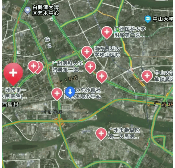健康是居住价值的底层逻辑,《保利珠江印象》周边医疗资源堪称“顶配”。3公里半径内汇聚南方医科大学珠江医院(三甲)、广医二院(三甲)、广医一院花地湾院区(新建三甲)、广州市第一人民医院鹤洞分院等多家权威医疗机构,形成多层级、全覆盖的医疗保障网络。尤其广医一院花地湾院区作为广州西部重点民生工程,已于2024年封顶,预计2026年投入使用,将极大提升区域急重症救治能力。此外,社区层面配有东沙街社区卫生服务中心,提供基础诊疗与健康管理。无论是日常小病、慢性病管理,还是突发急症,业主都能在15分钟车程内获得专业救治。在后疫情时代,这种“近而不扰、强而可靠”的医疗布局,无疑为家庭生活增添一份安心。