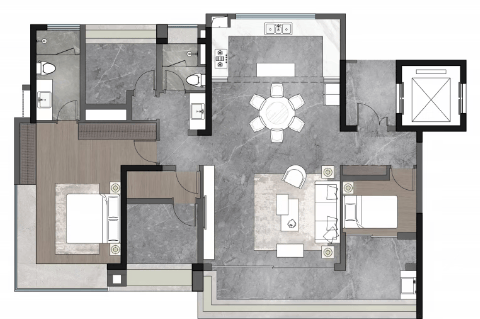 建面约 170㎡航母大平层:LDKG 世界会客厅,中西双厨,星级双套卧,270 度飘窗配衣帽间及双台盆~
