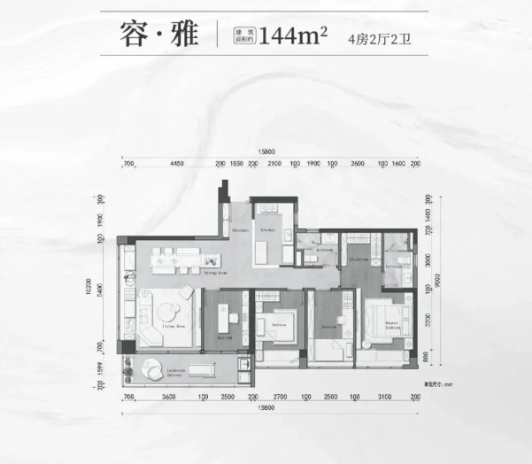 项目采用现代典雅的建筑风格,外立面精选铝板与Low-E玻璃,不仅提升建筑质感,更有效实现隔热节能。全盘仅1栋35层高商住单体楼,总户数115户,打造低密、私密的居住氛围。户型涵盖建面约107㎡、130㎡、144㎡及180㎡四类主力产品,均为三至四房设计,精准匹配改善型家庭的空间需求。