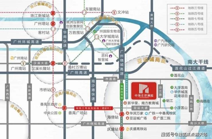中海左岸澜庭位于广州番禺亚运城核心区,紧邻亚运大道,依托“四横三纵”交通网(华南快速、南沙港快速、番禺大道、亚运大道+地铁4号线/18号线/22号线),实现15分钟通达珠江新城、20分钟直达南沙自贸区。
