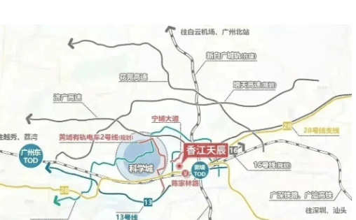 项目紧邻云埔大道、广园快速、开创大道等主干道,自驾去黄埔科学城、天河基本在30-40分钟内(非高峰期)。更关键的是,距离新塘TOD枢纽仅5公里,未来可通过穗深城际、新白广城际实现“九轨交汇”,通达湾区多地。