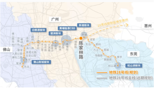 规划中的28号线(佛穗莞城际)设“陈家林站”,但截至2025年仍处于招标阶段,预计年底才开工,通车至少要5年以上。
