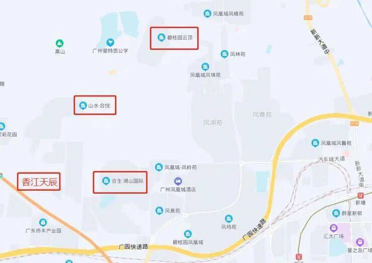 香江天辰位于增城新塘板块的陈家林片区,属于广州东部最早开发的居住区之一。这里早已不是“荒地”,而是拥有超30万常住人口的成熟大城圈,与碧桂园凤凰城、合生湖山国际等大盘连成一片,烟火气十足。