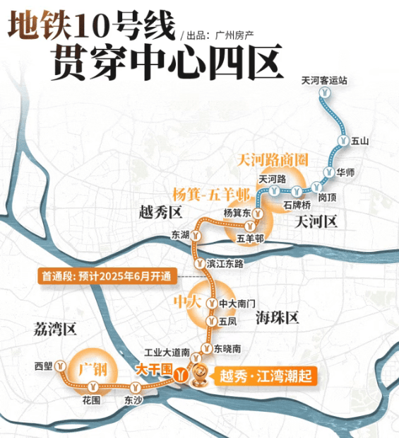 10号线:广州首条东西向快线,被誉为“黄金线路”,串联天河、越秀、海珠,可快速抵达珠江新城、体育西等核心区域。