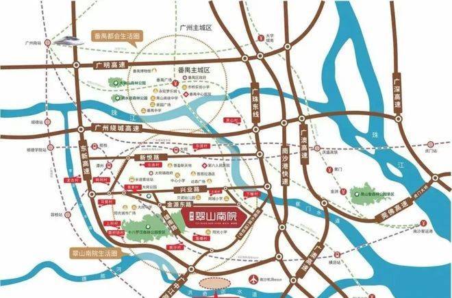 交通位置也值得说一说。翠山南院以大岗镇为核心,属于番禺南部这片热土。从市桥南开车过来大约半个小时,路况好时甚至更快。项目占据了三纵四横的交通节点,往北连通番禺中心区和广州主城区,往西可以快速进佛山生活圈,往南又能直达南沙自贸区。日常通勤或者周末周边出行,都不会太费劲,属于“进可城退可园”的典型位置。