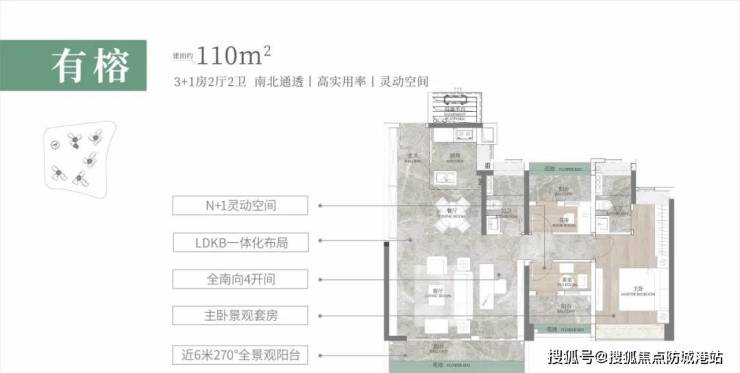 建面约140㎡的户型,把居住空间进一步拓展,甚至连主卧均做到了三面采光,将主卧的观景角度扩大到了270°。