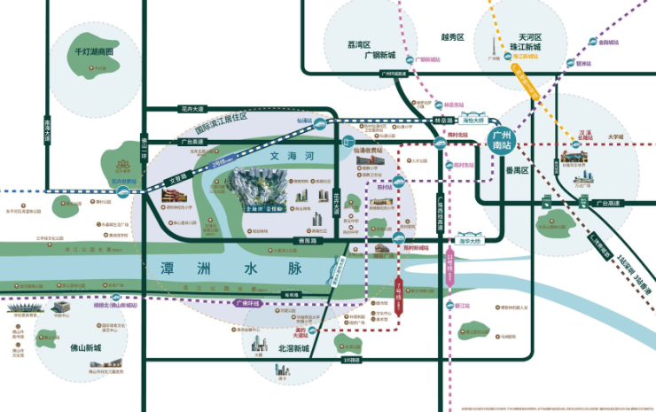 交通枢纽站:例如仙涌站、陈村站等,方便快捷地到达广州南站、琶洲CBD等地。