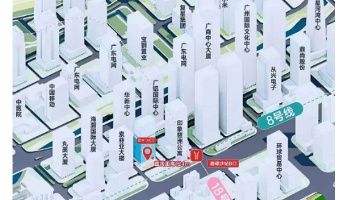 项目最大优势在于其顶级交通区位——距离地铁8号线与18号线换乘站磨碟沙站仅124米,步行2分钟即达。8号线一站直达珠江新城冼村站,18号线则实现30分钟内通达天河、番禺、南沙等湾区核心节点。自驾方面,紧邻新港东路与猎德大道,3分钟接入华南快速干线,半小时覆盖广州市中心主要商圈。周边500米内设多个公交站点,线路密集,构建“轨道+高速+公交”三位一体的立体交通网络,极大提升通勤效率与商务出行便利性。