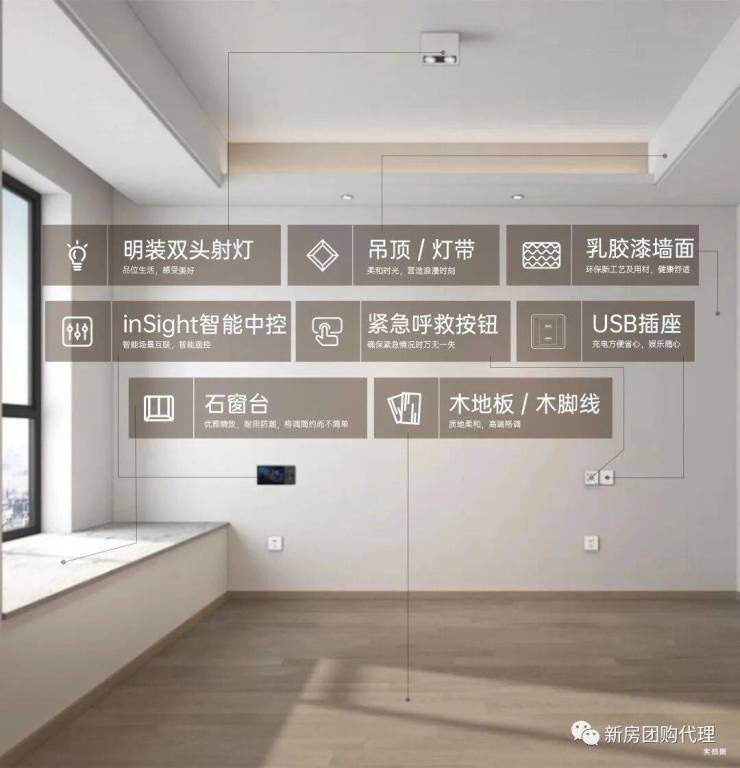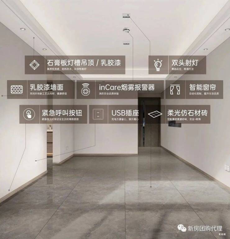 大到入户门锁、全屋智能控制、智能电动窗帘、紫外线消毒装置,小到温湿度传感器、烟雾报警器、紧急报警按钮、智能开关面板、浴室地面智能烘干机等,生活的细节处处考虑。