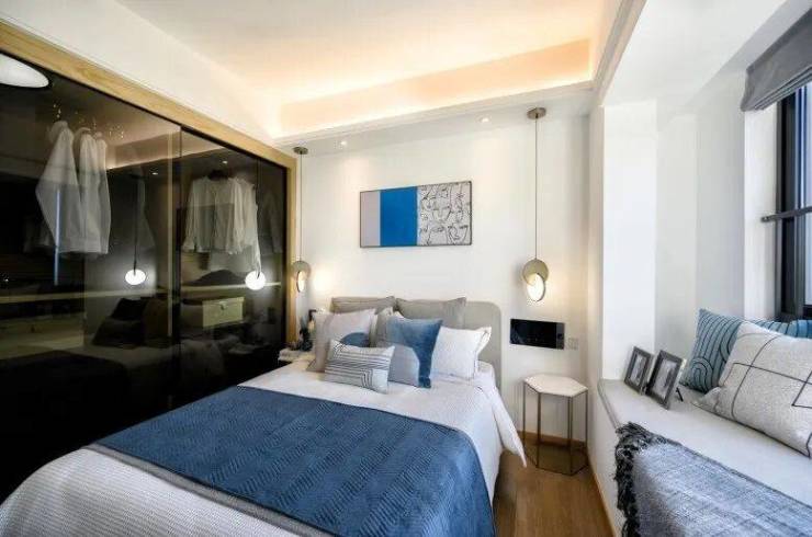 床头配置inSight智能中控智慧空间版,根据不同场景的 “家庭时刻”,为你带来贴心的主动智能服务,让住宅向更智能的高阶品质进化。明装双头射灯、吊顶+灯带、人造石窗台、木地板等,助力打造柔和浪漫的卧室空间。每一处设计的考量,从功能到布局,面面俱到,全方位照顾您的安全奢适起居。