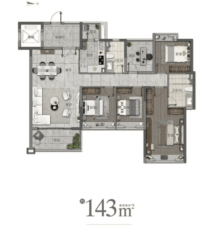 在售户型:97㎡三房、128㎡四房、143㎡五房(97-167㎡三至五房全覆盖)
