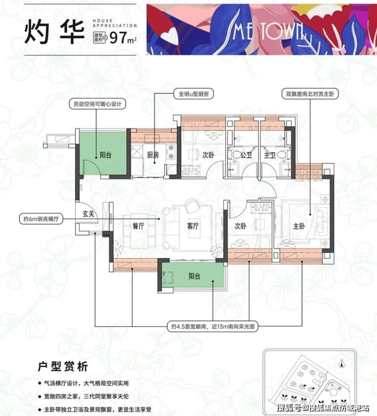 户型亮点:79-115㎡三至四房,南北通透,得房率超85%。
