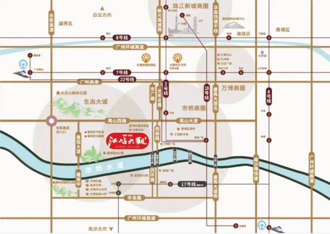 国科众安·江屿大观坐落于广州市番禺区核心板块,占据大湾区南拓战略主场,地处市桥水道旁,是广州番禺稀缺的江景公寓项目,地段优势得天独厚,既能享受成熟的城市配套,又能坐拥巨大的发展潜力,成为番禺楼市中极具竞争力的优质资产。
