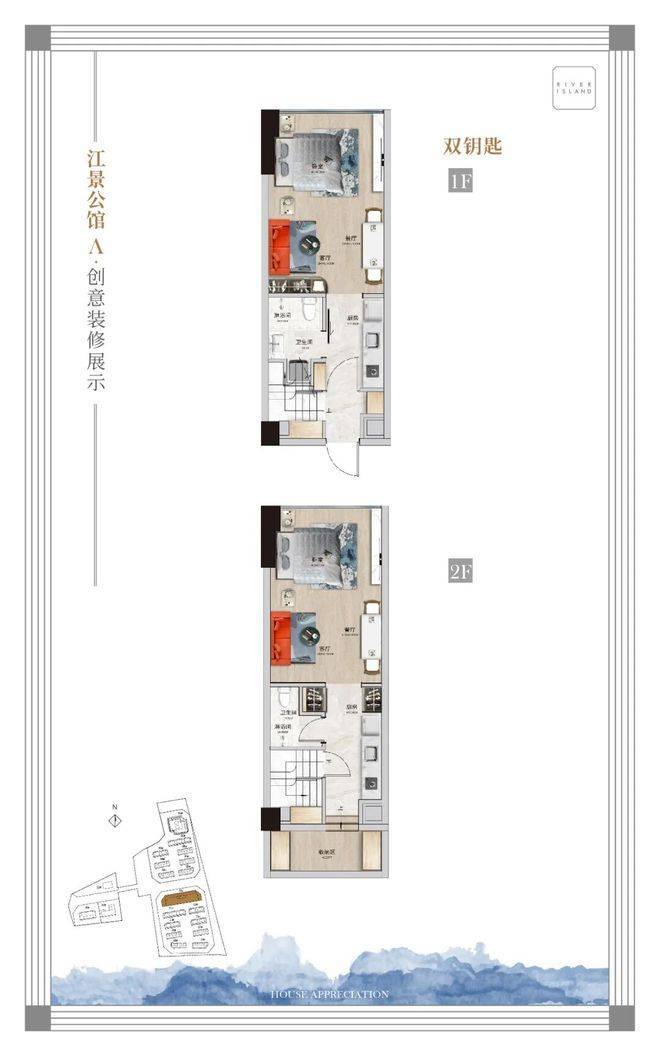 建面约48-49㎡LOFT户型,是项目的高端主力户型,适合小家庭自住、高端办公,或者追求高回报的投资者,户型空间宽敞舒适,双层布局更加灵活,使用率超100%,能够充分满足多元化的使用需求。该户型可打造为挑空二房,客厅采用挑空设计,空间感十足,彰显品质格调,一层作为公共区域,二层作为卧室和私密空间,布局合理,动静分区明确;也可打造为双钥匙户型,上下两层独立设计,独立入户、独立厨卫,可分别出租给不同的租客,实现双重租金收益,投资回报稳定;还可打造为三房,充分利用双层空间,设置三个卧室,搭配客厅、餐厅、书房等功能区域,满足小家庭的居住需求,同时预留充足的储物空间,让居家生活更加整洁、有序。该户型大多为江景户型,无遮挡俯瞰市桥水道一线江景,采光通风极佳,能够将江景美景融入日常生活,提升居住和办公的品质感。