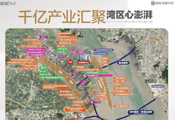 绿城蓝湾半岛雄踞广州南沙万顷沙板块,地处粤港澳大湾区几何中心,是国家级新区、自贸试验区、广州城市新核心区三大战略叠加之地。这里不仅是广深两大万亿级都市圈的核心交汇点,更是未来湾区发展的价值高地。