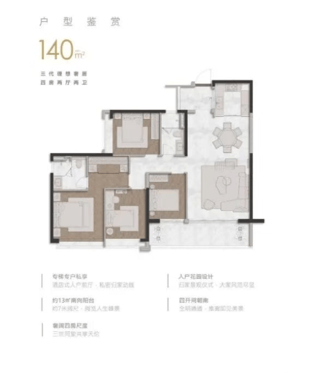 项目提供的现代美学大宅,面积从140㎡至264㎡不等,采用围合式布局,中央设有园林景观,为住户创造了一个都市中的绿洲。所有户型均以豪宅标准设计,力求最大化地利用景观视野,并保证室内采光充足。无论是新婚夫妇还是多代同堂的家庭,都能在这里找到适合自己的理想家园。