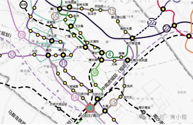 交通出行方面,项目距离在建及已运营的地铁18号线万顷沙站约2.5公里左右。18号线作为广州南北向重要快速轨道交通线路,运行速度可达到160km/h级别高速运行标准,能够实现高效城市通勤。通过该线路可以快速抵达珠江新城商务区以及广州东站交通枢纽。沿线板块近年来发展迅速,珠江新城核心商务区商业及办公资源高度集中,带动沿线居住价值持续上升。18号线的交通体系不仅连接广州中心城区,也加强了南沙与番禺以及城市核心商务区之间的联系,使居住者能够更自由地切换工作与生活场景。