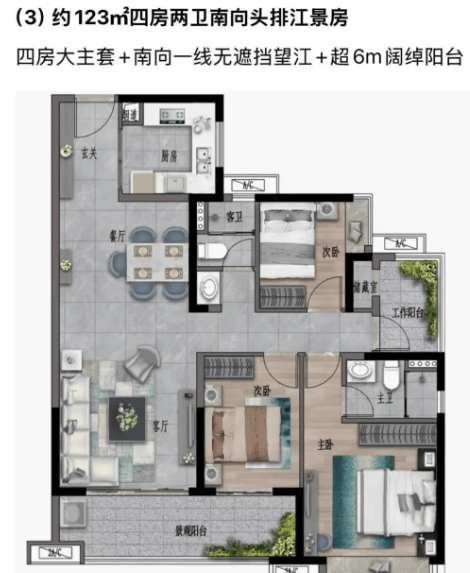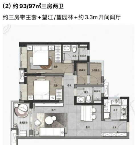 主卧套房+独立家政区,空间格局对标高端改善标准。