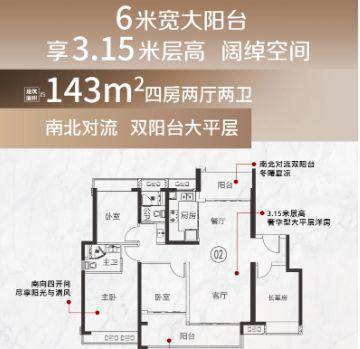 143㎡户型:4 房 2 厅 6 米阳台大平层