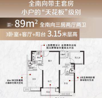 89㎡户型:3 房 2 厅纯南向带主套