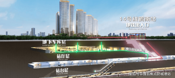 A:根据广州地铁集团公告,14号线二期计划2025年底开通,鹤南站A出口与项目地下连通。