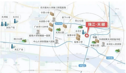 地铁线路:项目距离4号线车陂站约600米,附近还有5号线、21号线以及正在建设中的13号线二期。