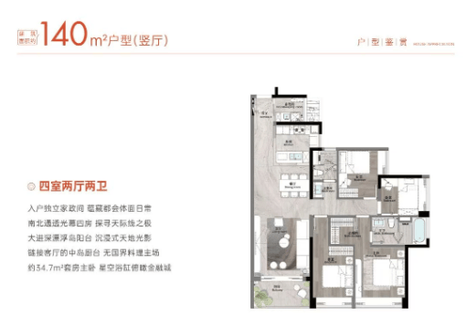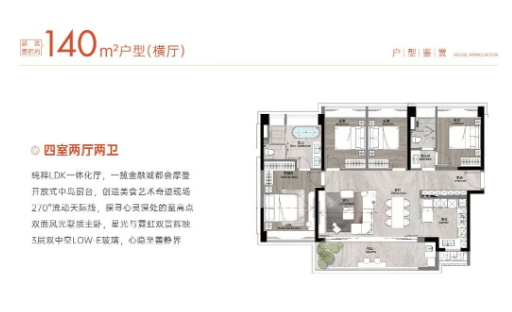125㎡-180㎡四房:主流改善型户型设计,兼顾舒适性和实用性,部分与香格里拉酒店同款装修标准。