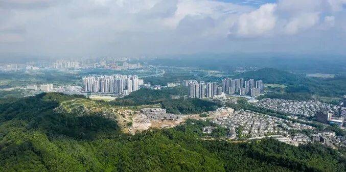 整个项目占地31万㎡,总建筑面积50万㎡,容积率仅1.1,在广州近郊实属少见。建筑布局依古浪山势而建,没有强行推平山体,而是让合院与叠墅顺着地形错落排布。外立面采用浅灰石材与暖调铝板搭配,线条简洁但不失温度,远看像是从山体自然生长出来的聚落。这种“因山制宜”的做法,不仅保留了原始地貌的生态价值,也让每户视野更开阔、采光更均匀。