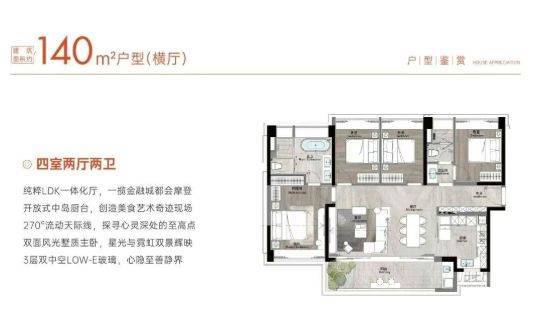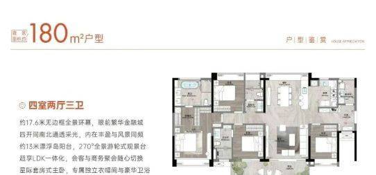 精装标准对标奢华酒店:项目采用全屋精装交付,甄选大金中央空调、唯宝卫浴、德格厨房系统等国际一线品牌,部分用材与香格里拉酒店同源,确保居住品质与耐久性。室内设计注重功能分区与动线优化,129㎡起步即做四房两厅两卫,180㎡户型更配备双主卧套房、独立家政间及超大景观阳台,充分满足改善型家庭对空间尺度与生活仪式感的需求。