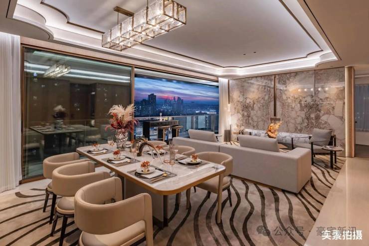 新城市·领院示范区与样板间以新中式礼序为设计内核,由顶尖大师团队执笔打造,整体呈现庄重雅致、奢而不华的高端质感。社区入口以高台式规制营造尊崇归家仪式感,中央园林遵循中式院落造景手法,叠石流水、花木错落,步移景异间尽显东方美学底蕴。营销中心空间开阔大气,功能布局合理,全方位展示项目规划理念与产品价值。样板间严格按照现楼标准打造,3.3米奢阔层高搭配全明通透格局,空间尺度开阔大气,精装细节精益求精,国际一线品牌用材随处可见,从客厅、卧室到厨卫空间,均以高净值家庭居住需求为核心进行打磨,直观呈现未来高端生活场景。