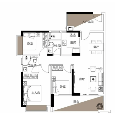 这一户型设计紧凑实用,层高达到3.6米,空间灵活百变,适合打造1至3房布局。精致装修并赠送品牌家电卫浴,满足了年轻人首次置业或投资者的需求。