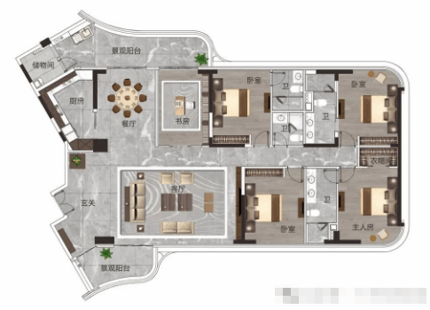 设计上强调高拓展面积户型,入户花园、阳台、飘窗等均有赠送空间,可随心打造成多功能百变空间。部分户型享有超6米的江景阳台,提供270°宽幕视野,增加了居住舒适度。