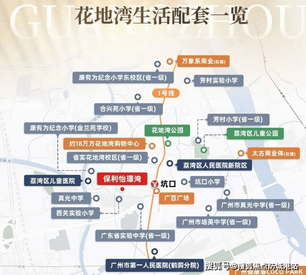 保利怡璟湾位于广州市荔湾区白鹅潭核心居住区,北接白鹅潭CBD,东邻聚龙湾,坐享两大经济带红利。根据荔湾区政府《十四五发展规划》,花地湾板块被划入珠金琶半小时生活圈,未来将承接白鹅潭CBD与聚龙湾产业红利,重奢商业、文化地标密集落地,区域价值持续攀升。政府投资超千亿推进片区升级,规划建设200万㎡商业综合体、三甲医院及省一级学校,为居住者提供全方位配套保障。