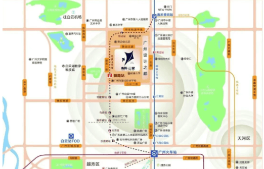 一、地段有潜力:白云新城CBD+设计之都,但界面尚待升级