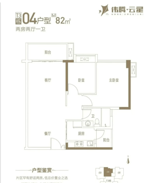 伟腾云星最大优势之一,就是现房销售。项目已于2023年交付,目前进入尾盘清仓阶段,主力在售T2、T3栋,户型包括: