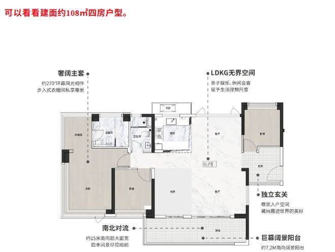 户型设计独具匠心,得房率超高。主推建面约 75 - 108㎡全南向三至四房,最高使用率 120% 。75㎡三房户型,独立玄关可改储藏室,U 型厨房操作空间大,主套 270° 环幕视野。95㎡四房户型,LDKG 一体化设计,6.4 米超大阳台。108㎡四房户型,约 15 米南向超大面宽,7.2 米南向阔景阳台,主卧带步入式衣帽间。每个户型都充分利用空间,满足不同家庭需求。