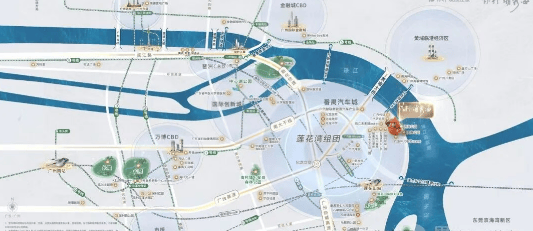 公共交通目前不太便利,出行基本靠自驾,距最近的地铁 4 号线约 10 公里。不过后续规划有地铁 8 号线东延线(莲花湾至万胜围),全程 8 个站,通车后到海珠仅需 20 分钟。公交线路也较少。莲花山枢纽站虽 3 站可达琶洲,但城轨通勤不太现实,且小区距莲花山站 2 - 3 公里,步行不便。自驾就方便多啦,南大干线已全线开通,距项目 750m,双向 6 - 8 车道,限速 80km/h,接驳新化快速,10 分钟到大学城、15 分钟到省妇幼、25 分钟到琶洲和万博。周边还有 3 条过江隧道(规划),建成后最快 10 分钟到黄埔。此外,还有 1 座莲花站,双地铁双城轨规划:8 号线东延段(在建)7 站到万胜围;17 号线(规划)5 站番禺广场;佛莞城轨 3 站万博、4 站广州南;穗莞深琶洲支线(在建)3 站琶洲🚗