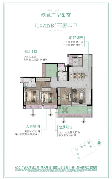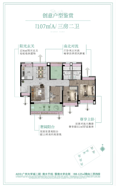 越秀·大学·星汇城位于广州大学城二期核心板块,这里是广深港澳科技走廊与广州科技创新轴的交汇点,也被誉为“南中国硅谷”的重要组成部分。依托大学城一期形成的高端人才与科研资源,二期正加速建设成为集产、学、研于一体的现代化新城。项目所处的位置不仅是城市重点发展轴线的交汇处,更是连接琶洲、金融城与万博三大CBD的重要节点,未来发展潜力值得期待,为居住于此的家庭提供了广阔的生活与事业前景。