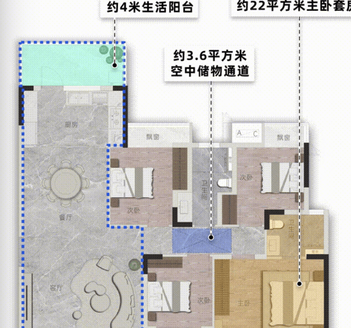 约135㎡的四房户型则更加宽敞大气,适合大家庭居住。它拥有多个卧室,可以为每个家庭成员提供独立的居住空间。同时,还配备了宽敞的客厅和餐厅,以及独立的书房,满足了家庭成员不同的生活需求。无论是举办家庭聚会,还是安静地阅读学习,都能在这个户型中找到合适的空间。