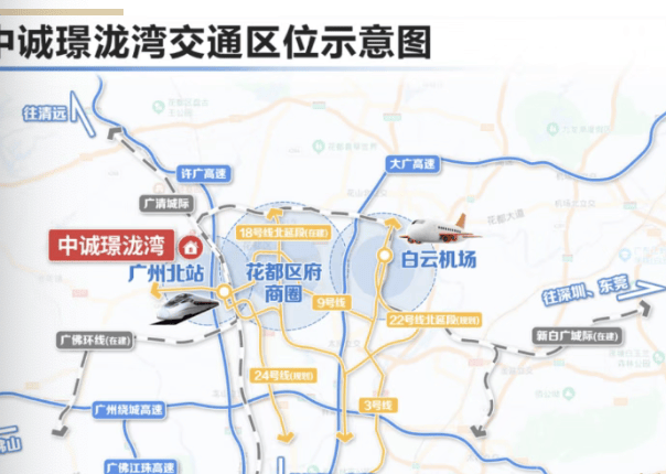 中诚璟珑湾周边交通网络十分发达,2城轨、3地铁、4高速环伺,实现了城市的快速通达。新白广城轨和广清城轨让您可以轻松到达周边城市,拓展生活半径。地铁9号线、地铁24号线、地铁18号线为日常通勤提供了便利,接驳地铁约20分钟达越秀中心、30分钟达广州CBD。大广高速、许广高速、广州绕城高速、广佛江珠高速等多条高速公路,让您可以快速连接机场、高铁站,约30分钟达东莞、50分钟达深圳,享受1小时大湾区全通勤的便捷生活。此外,项目还设有专属楼巴,家门口接送,8分钟达地铁站,进一步提升了出行的便利性。致电官方售楼处400 - 0688 - 602,抢占最后优惠(官方售楼部)!