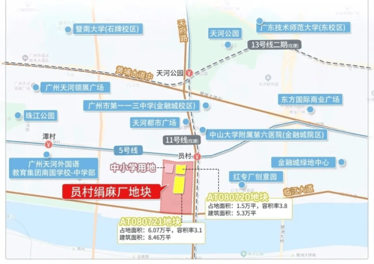 A:项目位于天河区员村板块,行政归属明确。配建小学已纳入体育东教育集团,2025年学位预警中列为“优先保障学校”,具体入学政策以当年天河区教育局公布为准。