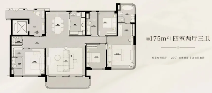 175㎡四房:双套房设计,南向面宽达15米,多代同堂无压力;