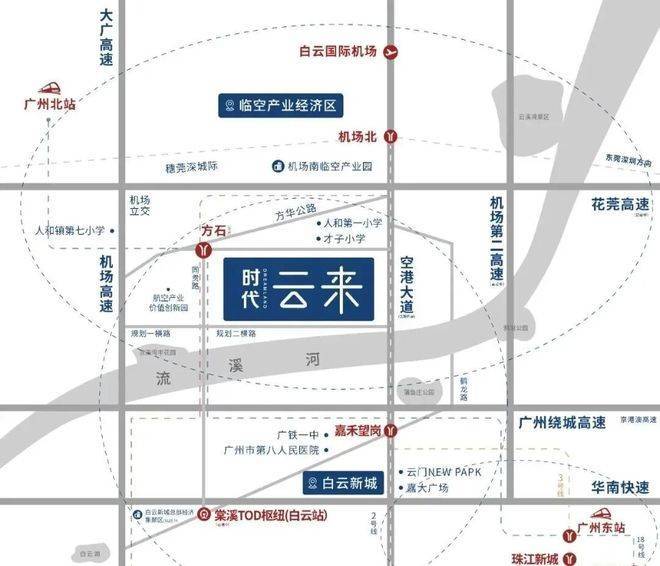 从区域城市逻辑来看,白云区近年重点发展的是空港经济链条。广州白云国际机场作为粤港澳大湾区北部重要航空枢纽,带动了周边商务办公、酒店会展以及高端服务产业集群。时代云来正位于这一产业扩展轴线上,未来人群结构将逐渐向高学历产业人群、商务通勤人群倾斜。项目占地面积约4.56万㎡,总建筑面积约25.5万㎡,属于中大型社区开发体量。项目由(开发商名称)开发建设,建筑风格偏向现代都市简约立面体系,强调社区空间感与采光效率。
