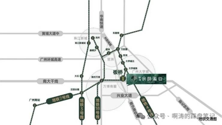 轨道交通:项目紧邻地铁 7号线,步行可达。7号线是广州重要的东西向干线,贯穿海珠、番禺、顺德等地。