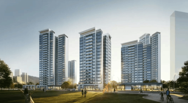 项目总占地约4.29万㎡,总建面约15.14万㎡,规划9栋住宅、1栋公寓及3栋商墅,总户数仅796户,容积率低至2.44,绿化率达35%,营造出低密、舒适、静谧的居住环境。所有住宅均为11-27层小高层设计,梯户比为2梯4户或2梯5户,兼顾私密性与通行效率。